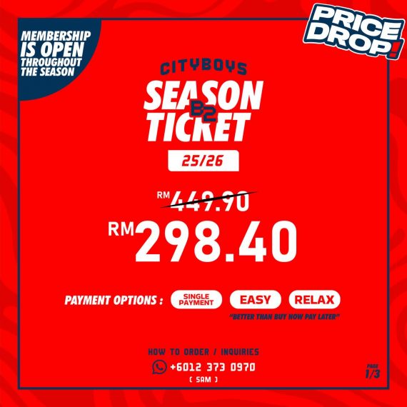 Perak FA 25 January 2026 5:00pm Stadium Bolasepak Kuala Lumpur Dapatkan tiket online anda di (Tickethotline) ataupun tiket fizikal, di kaunter A harini bermula 1 petang sehingga tamat separuh masa pertama Tiket Grandstand & Tiket Junior hanya jual di tiket Kaunter A sahaja (Secara fizikal)