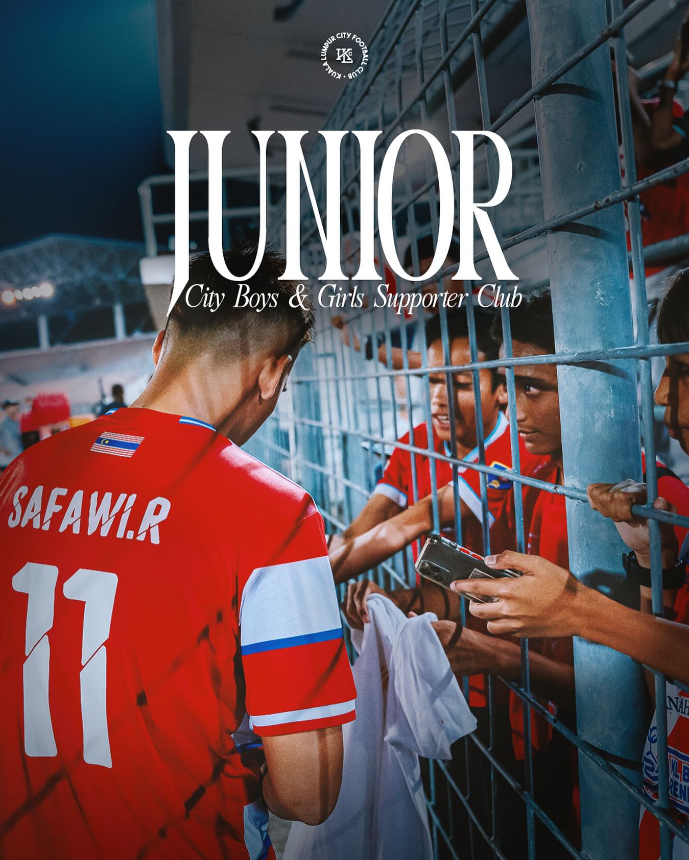 Datanglah ya! Bawa anak sekali dan jangan lupa MyKid/MyKad anak anda yang berumur 7 ke 18 tahun, menurut tahun lahir. RM10.90 sahaja pendaftaran semusim, tawaran peluang untuk mendapat tiket perlawanan Junior dengan diskaun sehingga 70%, diskaun atas merchandise rasmi KLC, terima birthday voucher lagi, peluang untuk menjadi mascot pada hari perlawanan serta jemputan untuk acara melibatkan Junior!