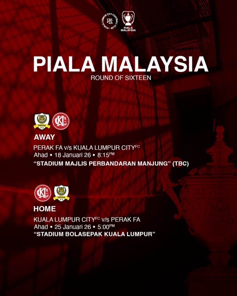 07 Jan Piala Malaysia is back! We kick off our Piala Malaysia 2026 campaign against Perak FA! Posted at 15:15h in Club News by Kuala Lumpur City Football Club 0 Comments Away | 18 January 2026 Home | 25 January 2026 Let the journey begin!