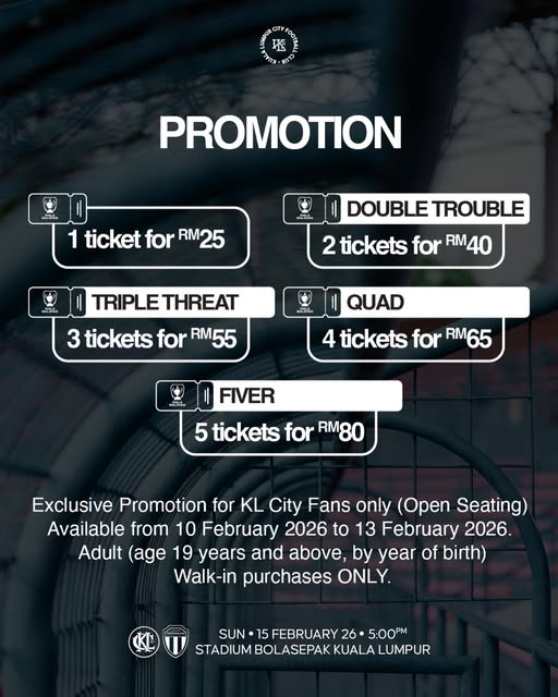 Specially for City Boys fans in conjunction with Sunday’s fixture vs Teregganu, unbeatable offers for adult tickets!