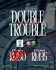 A new year and with it some new resolutions, but great deals like our Double Trouble shall must remain the same! TWO (2) general admission open-category adult tickets at RM35 ONLY for KLC vs Imigresen!! YES 2 TIX = RM35! Sales Period : Starts immediately